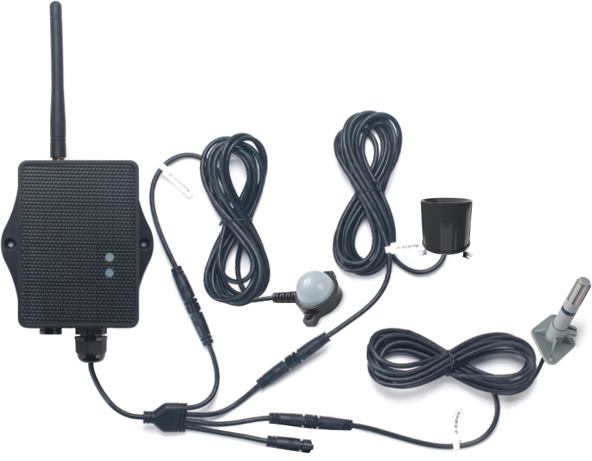 ウェザーステーションキットWSC2-Compact-LSには、LoRaWAN送信機、温度/湿度/気圧の3 in 1センサー、照度センサー、レインゲージが含まれています: 温度、湿度、気圧トランスミッターは、ウェザーステーションと通信するためにI2Cインターフェイスを使用しています。 また、転倒バケツ方式の雨量計を接続するためにパルスカウント入力を備えています。